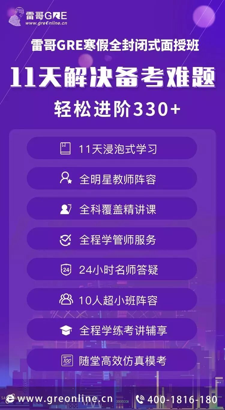 当然,如果怕考不出来的你,可以来雷哥GRE寒假封闭班: