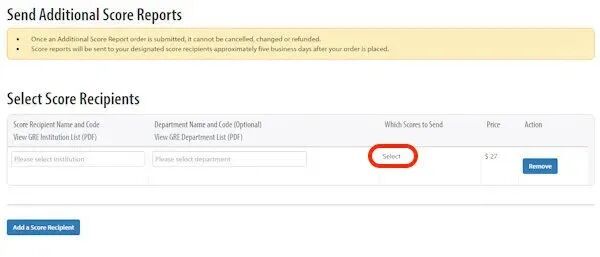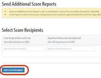 5 如果你想一次寄送多所学校,点击【Add Score Recipient】 ,增加一个收件人。继续增加,则重复本项操作。
