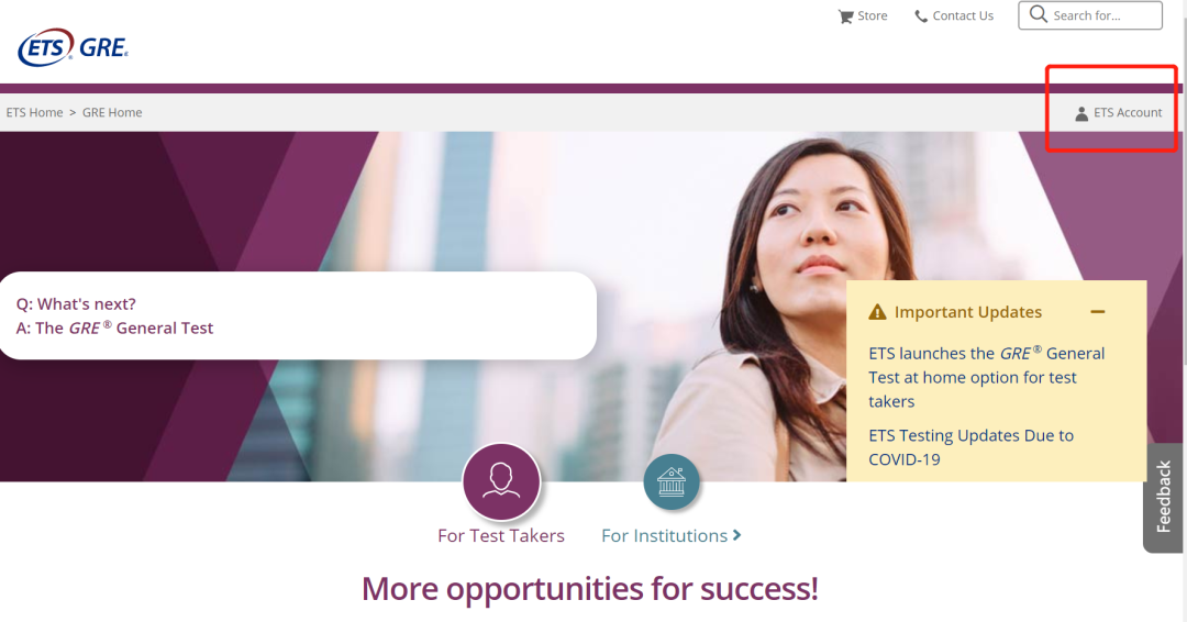 创建一个ETS账号,GRE考试成绩只能通过ETS官方网站进行寄送,地址:https://www.ets.org/gre;