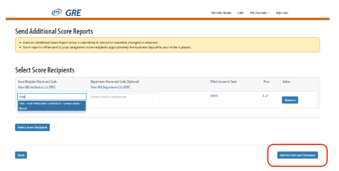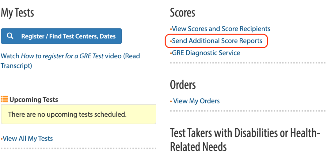 如果你参加的是Test at Home,或者非中国大陆地区的GRE考试,那你应该是在ETS官网注册的账号,就省去上一步,直接就可以送分;