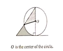 取极端情况,当直角三角形的顶点和切点很接近时,明显斜线部分大于阴影部分;当顶点远离切点时,明显阴影部分大于斜线部分。